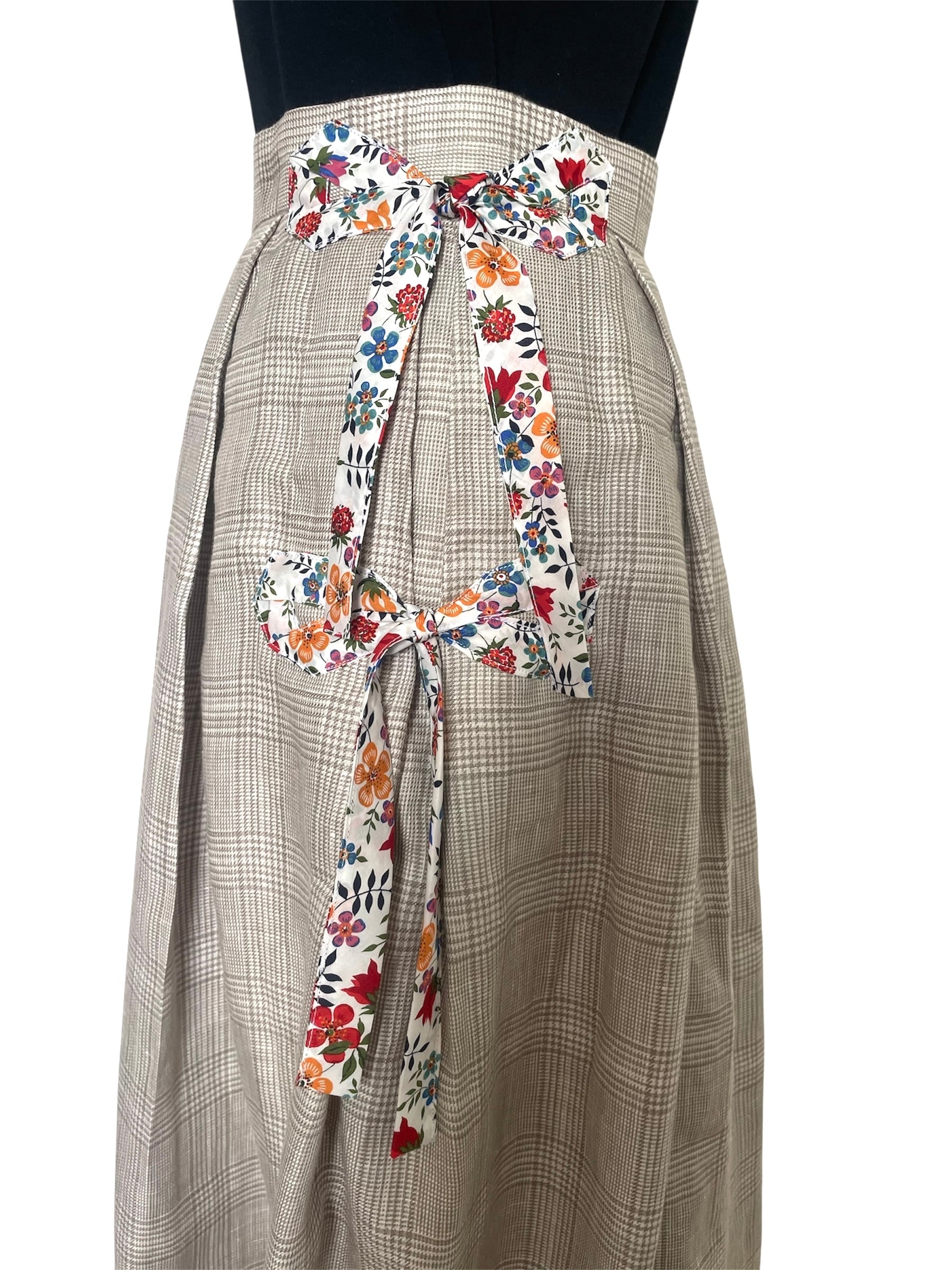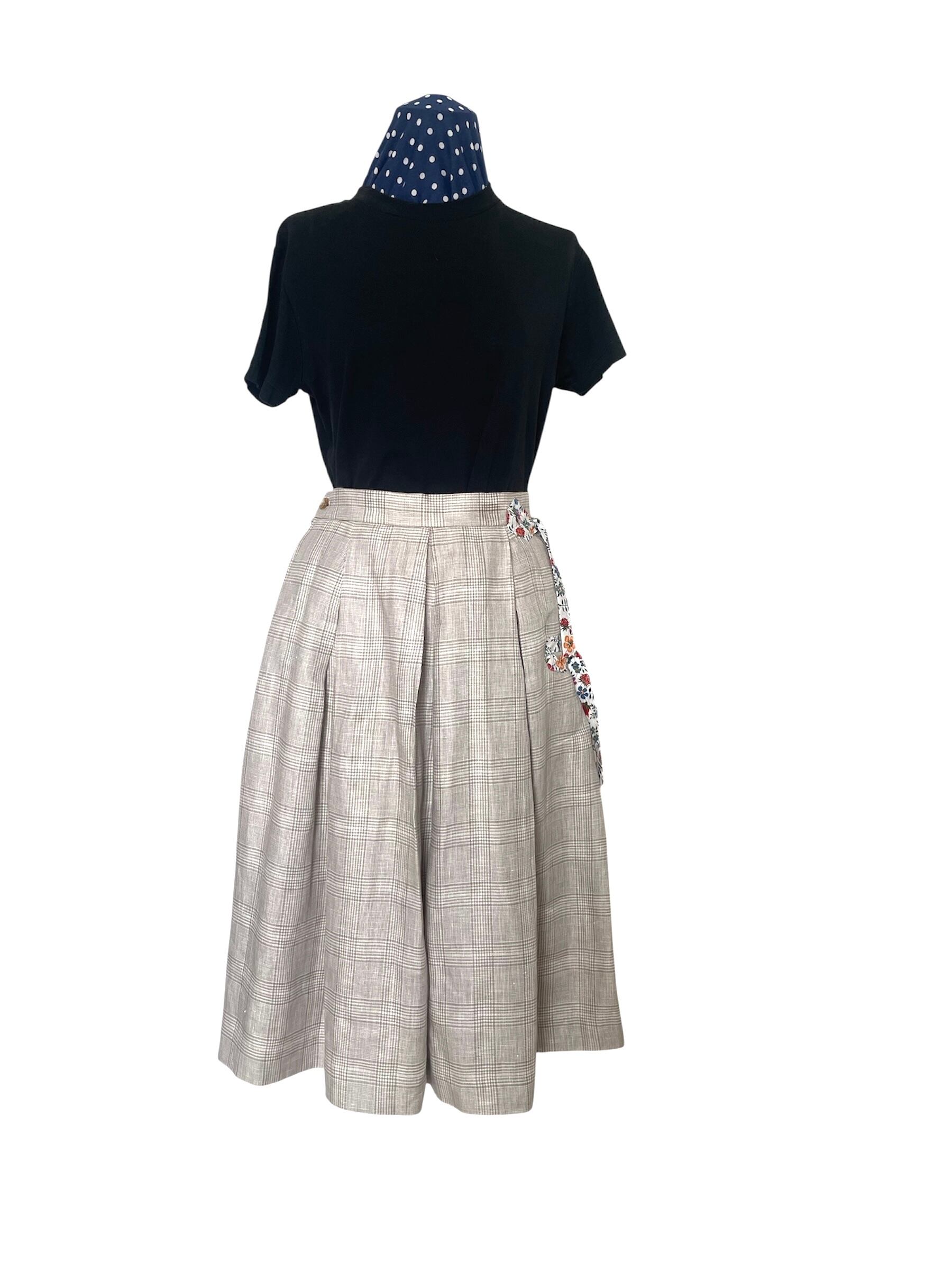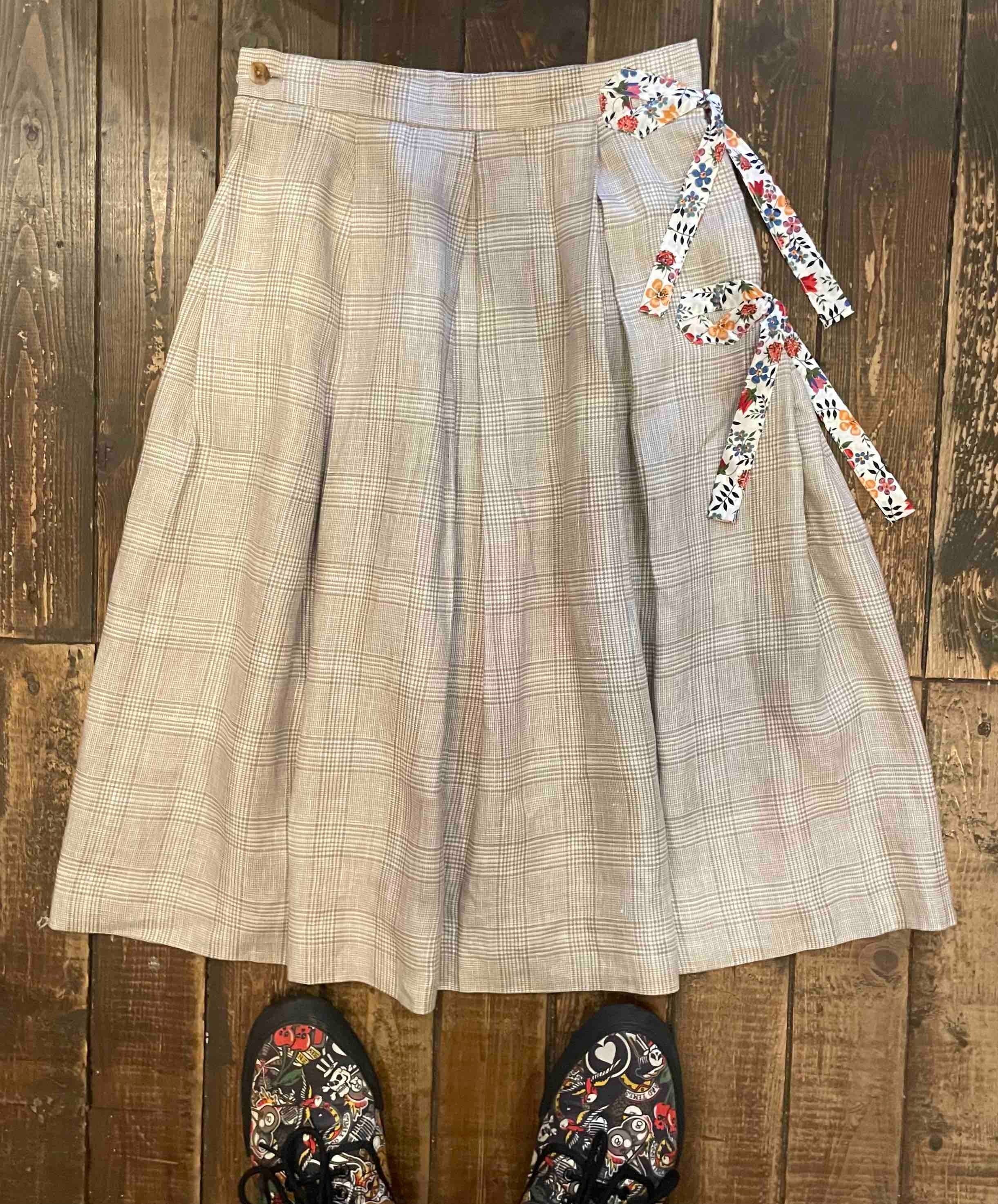 LIBERTY SIDE RIBBON × LINEN TUCK FLARE REMAKE SKIRT