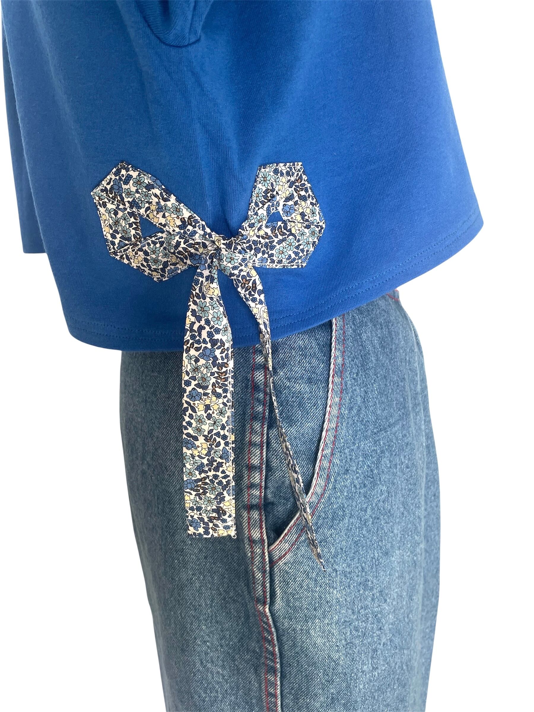 ミシガン州立大学のジップ付きUSED USA Tシャツの両脇に英国リバティ社の生地で作ったかわいいリボンをたたき付けました。