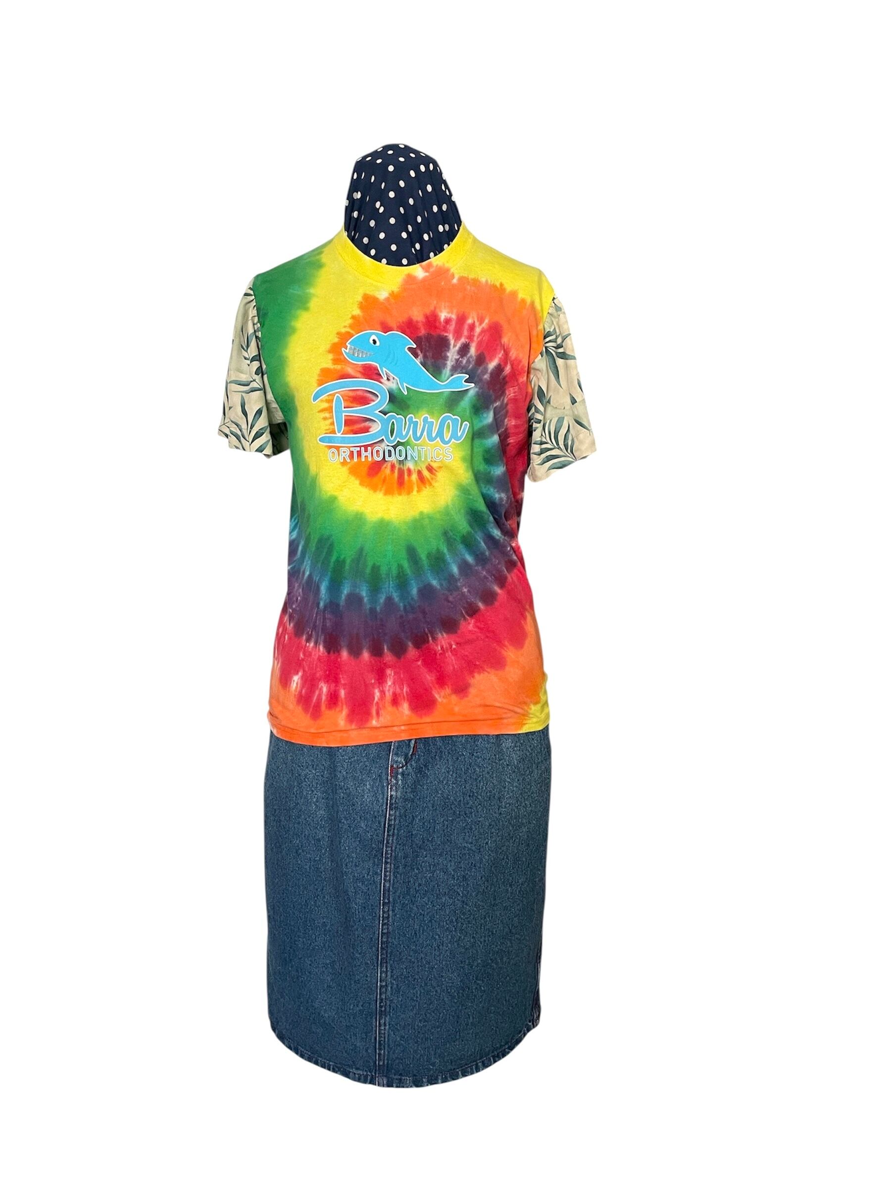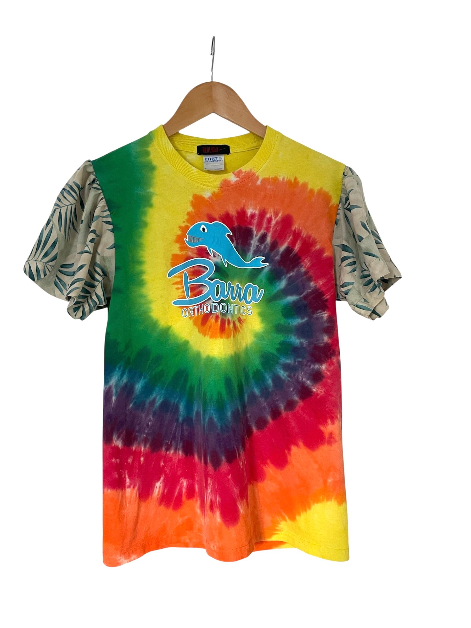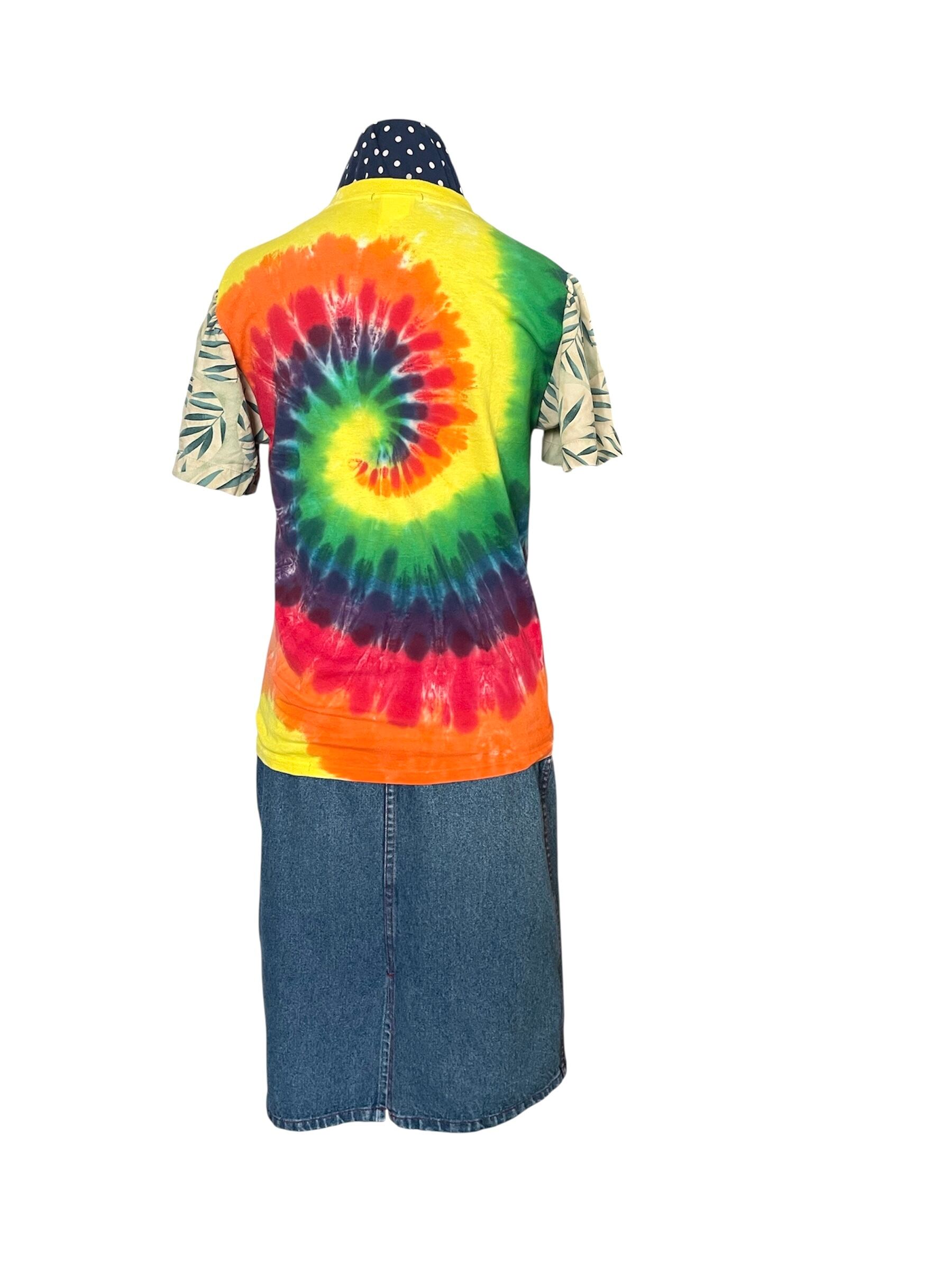 タイダイ染めのUSED Tシャツにシルクヴィンテージアロハシャツの袖をドッキングしたリメイクブラウス!