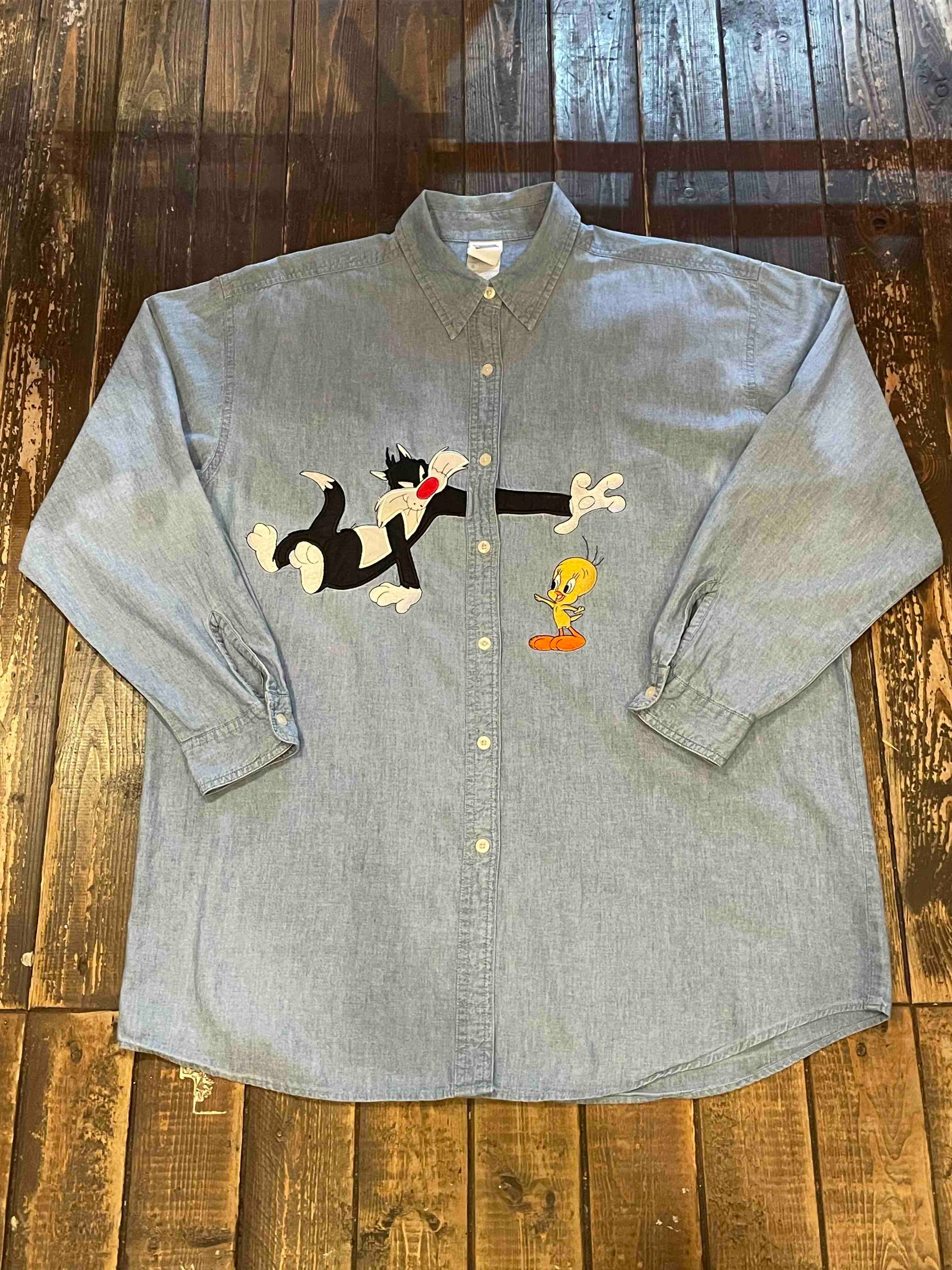 1999年WARNER BROS製、トム&ジェリーの刺繍が前身に入った可愛いデニムシャツ!