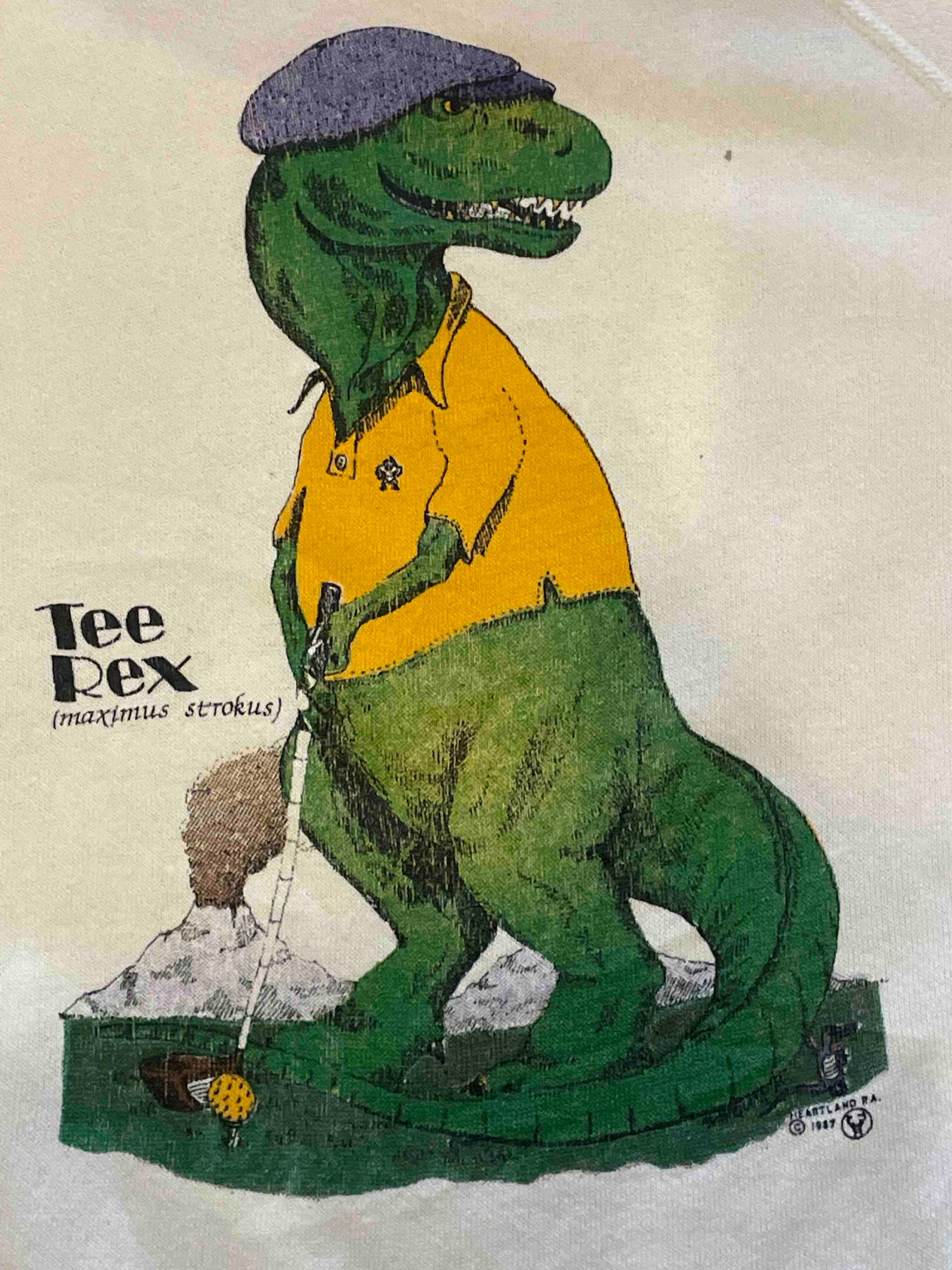 TEE REXがゴルフをしているプリントの貴重なラグランヴィンテージスウェットです!